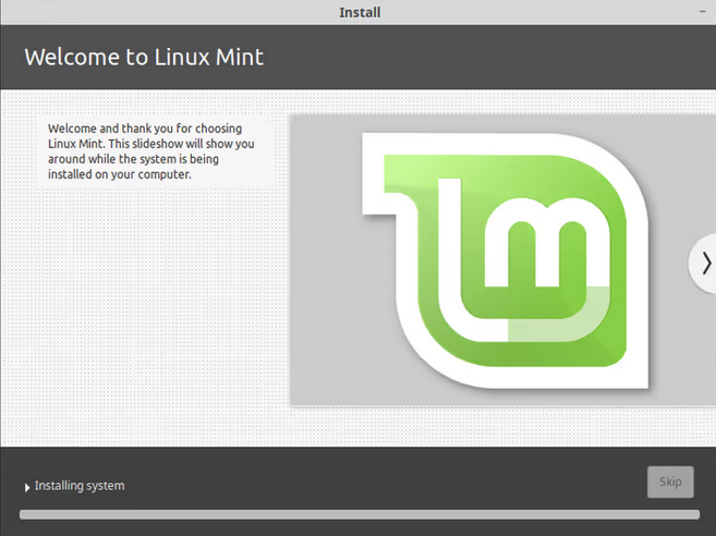Now you will be greeted with the linux mint’s installation wizard. Follow through and you will start the installation process.